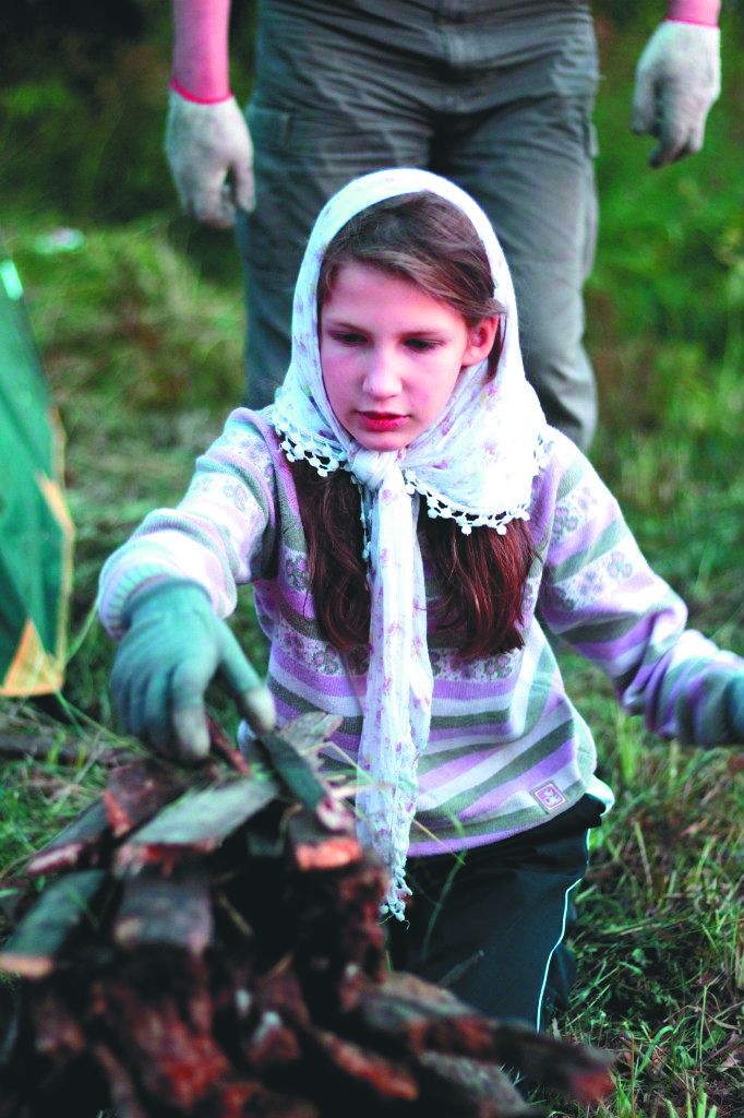 Рядом с часовней они и поставили две палатки. Дети вместе с родителями приступили к работе. Сначала из храма вынесли мешки мусора. Каждое утро девочки старательно наводили порядок, очищали, мыли пол, стирали надписи со стен. Повесили полочки, поставили иконы. Дмитрий выкосил траву вокруг заброшенной часовни.