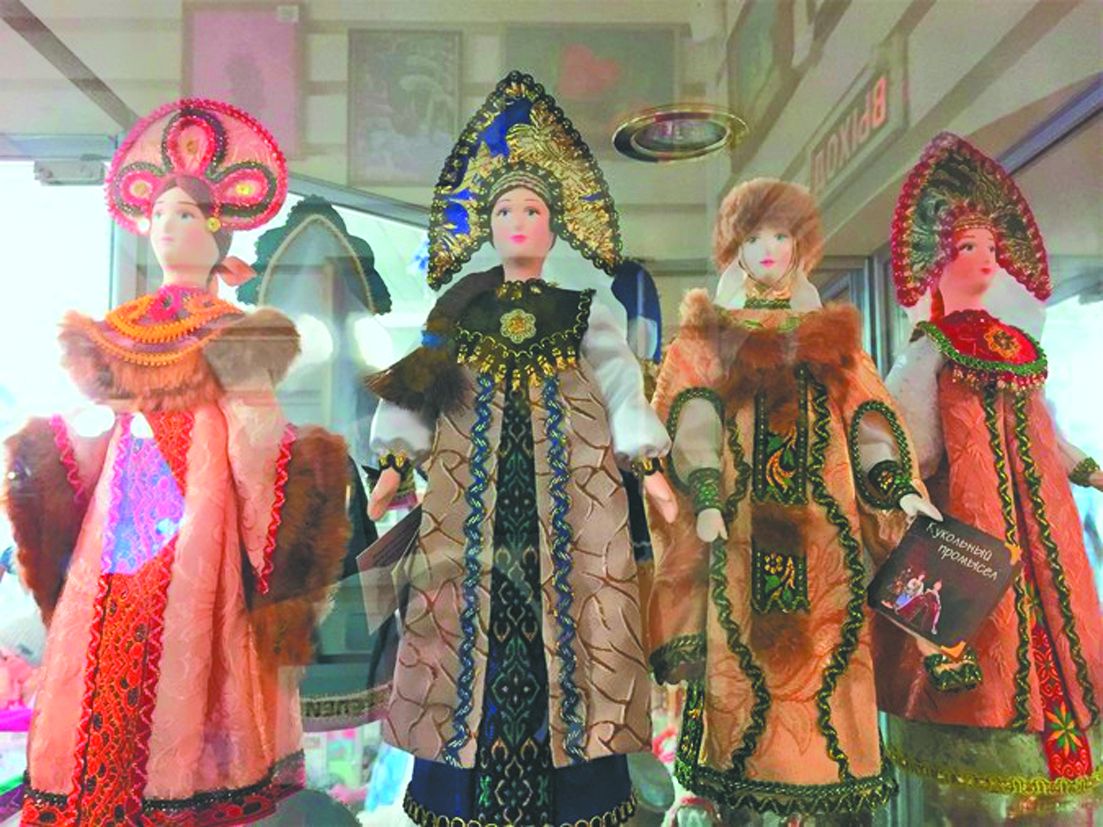 В магазине сувениров – царство русской игрушки и костюма. Сотни эксклюзивных кукол, матрёшек, ладные кокошники и доброго качества русские рубахи и платья, в том числе для детей. Почти всё местного производства.