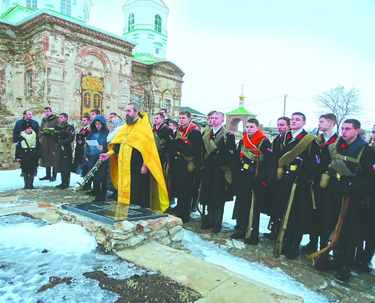 Третий день. Сегодня выступаем в поход. Впереди реконструкция боя времён Гражданской войны, встреча с революционно настроенными казаками. Привычный уже подъём в 6 утра. Я в форменном платье сестры милосердия. Никогда не думала, что скажу это, но пальцы проворно застёгивают крючки шинели. Вообще ношение аутентичной формы абсолютно переносит тебя на сто лет назад. И, как точно подметил протоиерей Пётр Сухоносов, «форма дух бережёт». Три взвода: кадеты, «юнкера» и учащиеся кадетской школы имени Николая Второго при ДГТУ выдвигаются в Монастырское урочище. Здесь в сырой донской земле лежат герои Азовского сидения, а рядом с ними красноармейцы и краснофлотцы, павшие в двух войнах XX века. Им теперь нечего делить – один крест на всех, одна на всех молитва.