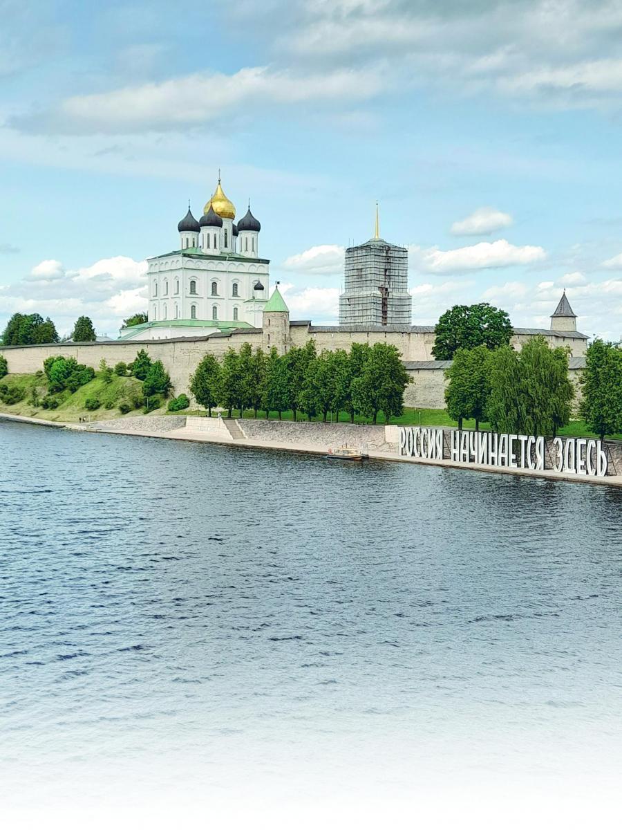 Эту надпись на берегу реки Великой у подножия Псковского кремля (Крома) видно отовсюду